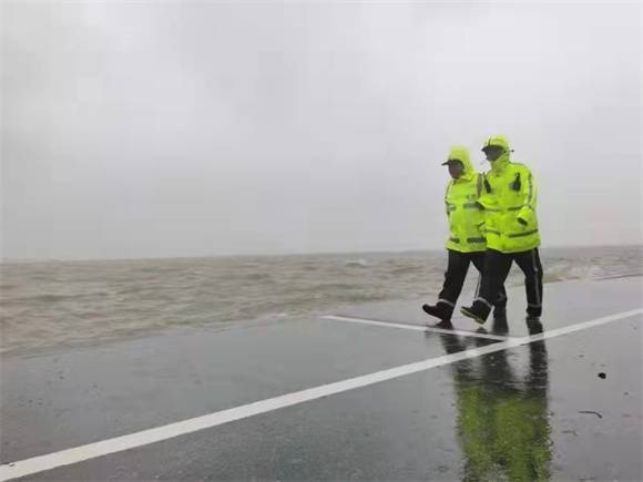 25日下午1时许,金山城市沙滩现水位为4.9米,风大雨大,造成部分木制栈道移位,挤压变形,设备受损,景点东海岸木栈道平台被海浪冲至西海岸,下海堤低洼处也一度出现积水。针对这一情况,象州路派出所民警及时处置,对积水地段开展疏通,设置警示标志,对松垮设备进行加固,排查隐患,疏散无关闲杂人员,同时结合视频监控,确保及时发现沙滩周边风险,一旦出现紧急情况开展相应的处置工作。