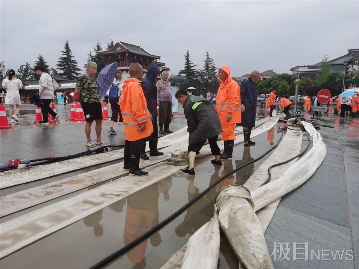 据了解,大唐芙蓉园西门处是周边区域地势低点,遭遇强暴雨就容易出现排水不畅,导致积水的状况。当天下午,现场排水清扫工作人员有三十多人。