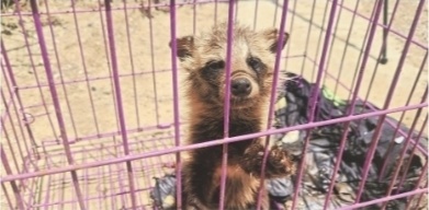 被“关押”在笼子里的貉。易美 摄