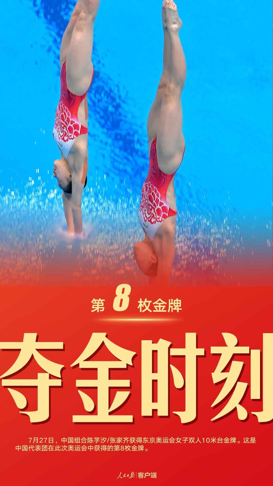 祝贺!7月27日,中国组合陈芋汐/张家齐获得东京奥运会女子双人10米台金牌,中国跳水队实现这一项目的奥运六连冠!这是中国代表团在此次奥运会中获得的第8枚金牌。