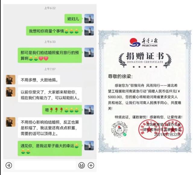“我女朋友说把拍婚纱照的钱先捐出去,给更需要的人!”7月22日一大早,黄冈市英山县红山镇青年徐梁向省青基会捐款5000元,这是他和女朋友准备用来拍婚纱照的资金。