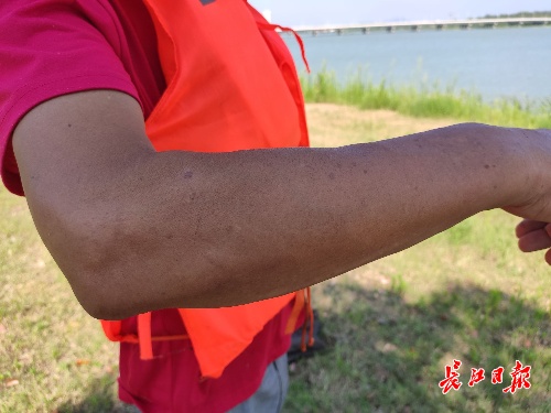 “夏天的湖上有两个太阳,一个是天上的,另一个是水中的。队员们要穿着严实的救生衣,在高温炙烤和阳光照射下工作,一天下来,衣服上到处都是白色的盐渍。”黄清平举起黝黑而布满晒斑的手臂告诉记者,一年四季,除了大风大雨不作业,平常上午6点下水,下午7点上岸,中午太阳大,就稍微休息一下。“这西服不仅可以用来防晒,还能铺在地上用于休息。”
