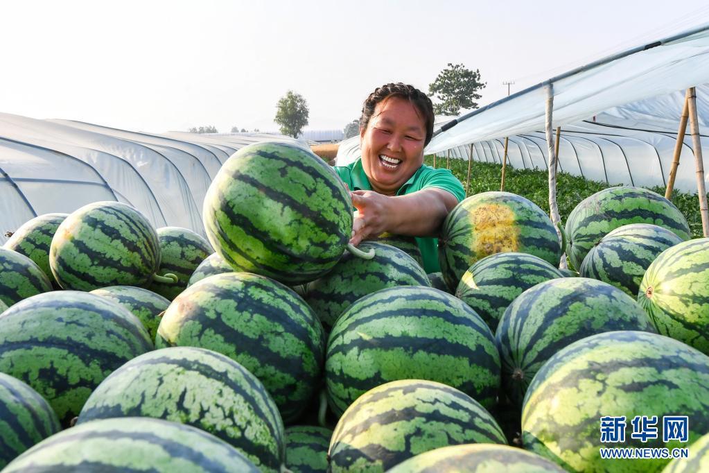 山西省运城市夏县祁家河乡横口村村民将西瓜装车(6月2日摄)。新华社记者 曹阳 摄