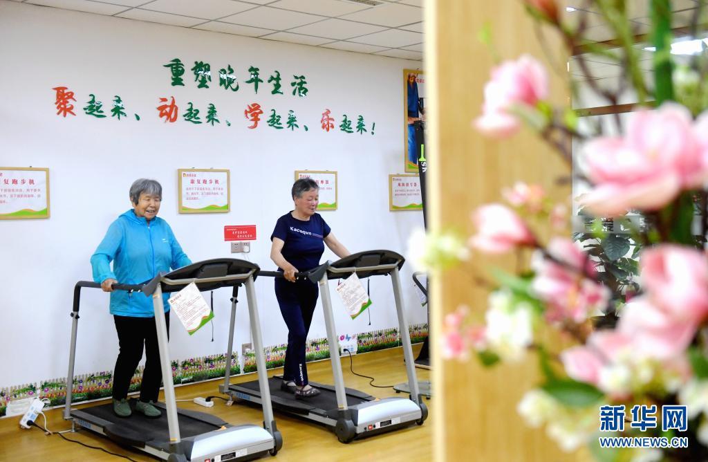 在河北石家庄桥西区振头街道普爱养老照护中心,老人在做康复训练(6月2日摄)。新华社记者 王晓 摄