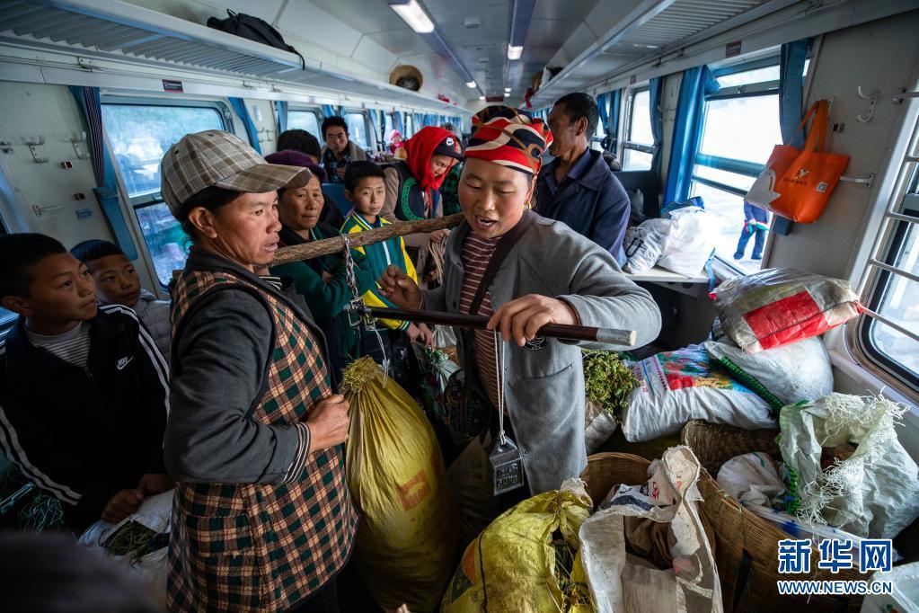 仲夏清晨,在成昆铁路线上行驶的“小慢车”上,身披“察尔瓦”羊毛披毡搭车赶集的彝族老乡们已经开始了一天的生意,刚摘的蔬菜、鲜活的鸡鸭……不等到集市已经卖了大半。