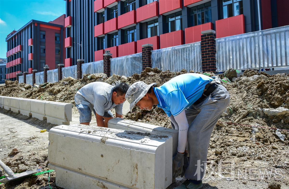 “去年的疫情和抗洪,耽误了道路修筑,现在工期很紧,所以这大的太阳天也要加班加点工作。一块水泥材质的路缘石200斤重,我们两人抬起来有点吃力,但抬多了,就知道怎么省力来抬,让力使得恰到好处……”修路师傅告诉记者。
