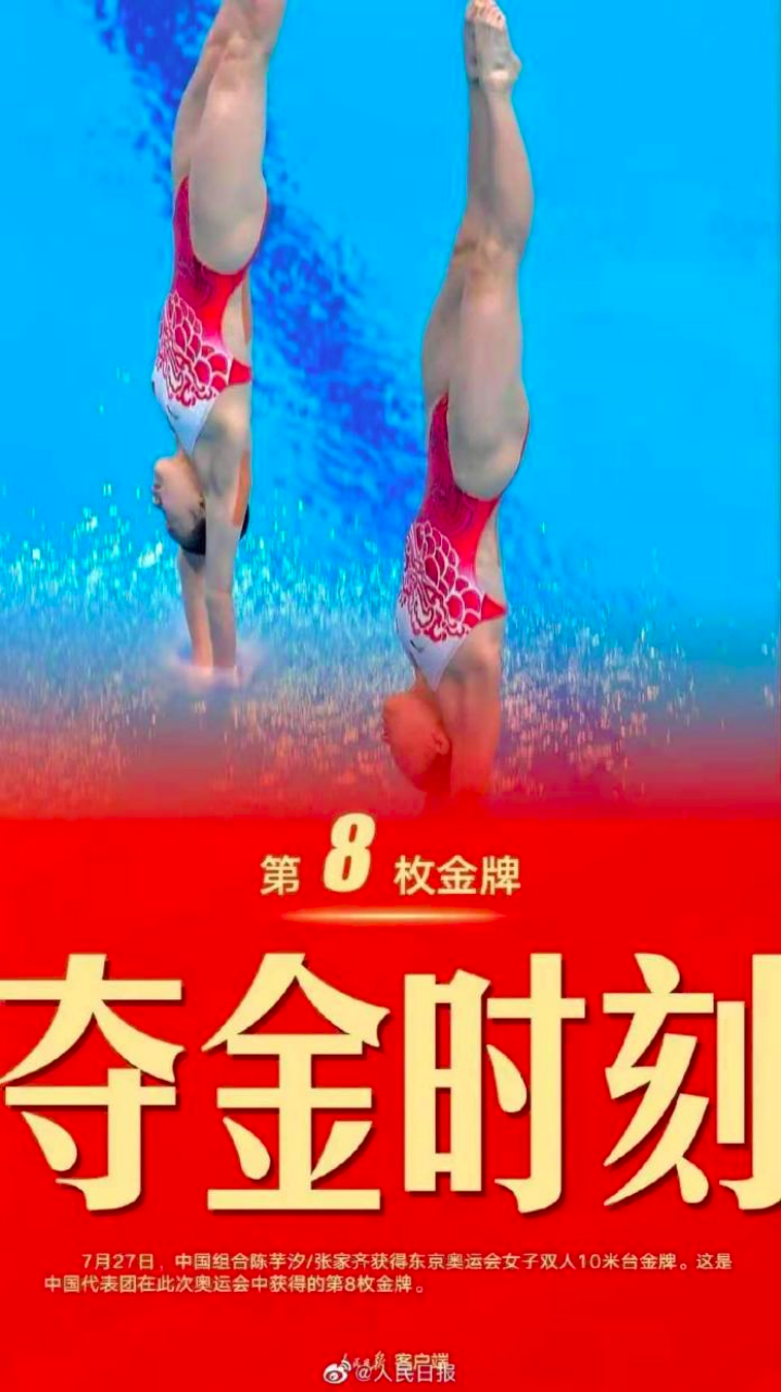 7月25日,东京奥运会跳水女子双人三米板决赛中,中国队施廷懋 、王涵为中国奥运军团取得第四金!网友表示你可以永远相信中国跳水梦之队。