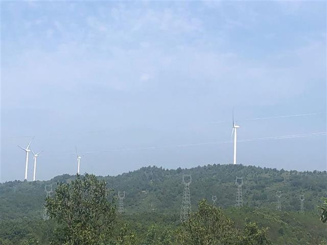 “现在平均风速7.9米每秒,35台风机今天一共已经发电46.846万度。”7月14日上午10时,在大悟县城以北5公里的江家山风电场,中广核新能源湖北分公司生产运营部负责人岳旭向湖北日报全媒记者介绍。江家山风电场总装机容量7万千瓦,2014年并网发电,年均上网电量约1.4亿千瓦时(度)。风电场监控室的大屏幕实时数据显示,今年到现在已发电7753万度,建成至今发电量9.2亿度。