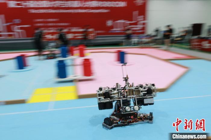 机器人在比赛场地“飞速”移动。 梁犇 摄