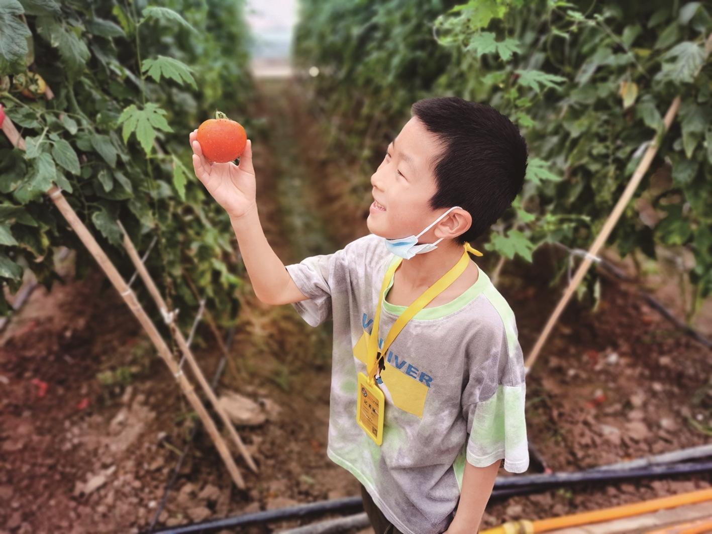在天蔬现代智慧农业展示基地,许多从小在城市里长大的小朋友,第一次看到饭桌上的食物是如何而来。其貌不扬的玉米,在这里就有300多种不同品类;亲手摘一株荷叶杆,原来和藕一样,里面也有斩不断理还乱的丝。在农田里,小记者们兴趣盎然地了解不少农业知识:例如什么标准生产出来的菜才能被称为有机蔬菜?植物生长最为必需的营养元素是什么?