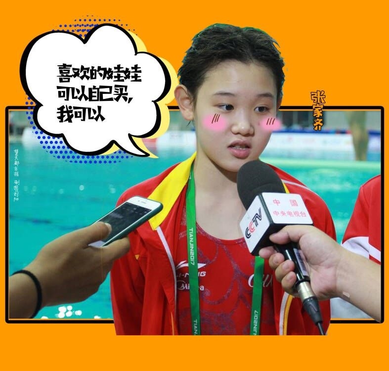 奥运金句有豪言壮语型,也有可爱超萌型。7月27日,女子双人10米台跳水比赛,“00”后小将陈芋汐和张家齐为中国军团斩获第8枚金牌。赛后,网友们找出了张家齐2019年世锦赛夺冠后的采访视频,采访中当张家齐被问到获得冠军后想要什么奖励时,彼时年仅15岁的她说,“可能还是个芭比娃娃吧!”这句话瞬间让我们看到远距离的奥运冠军也有如此邻家女孩的一面。