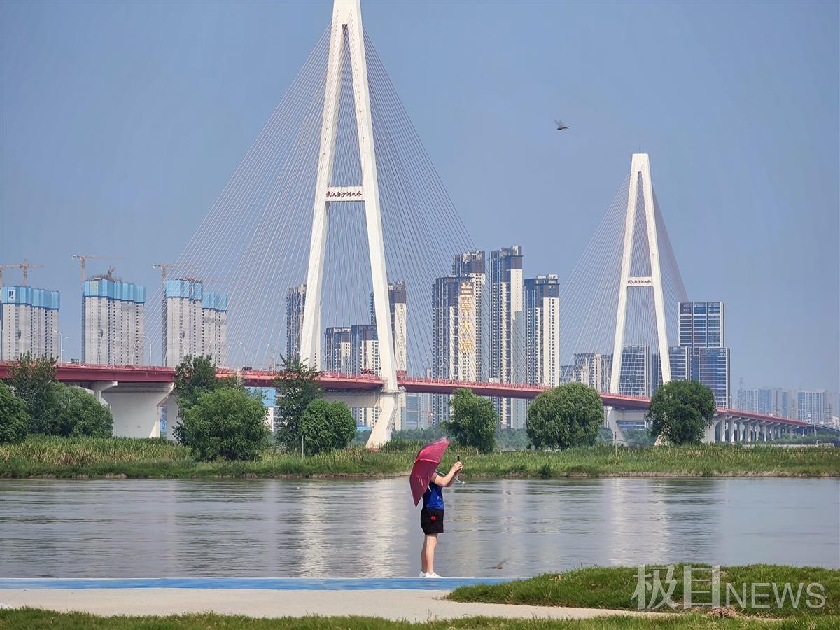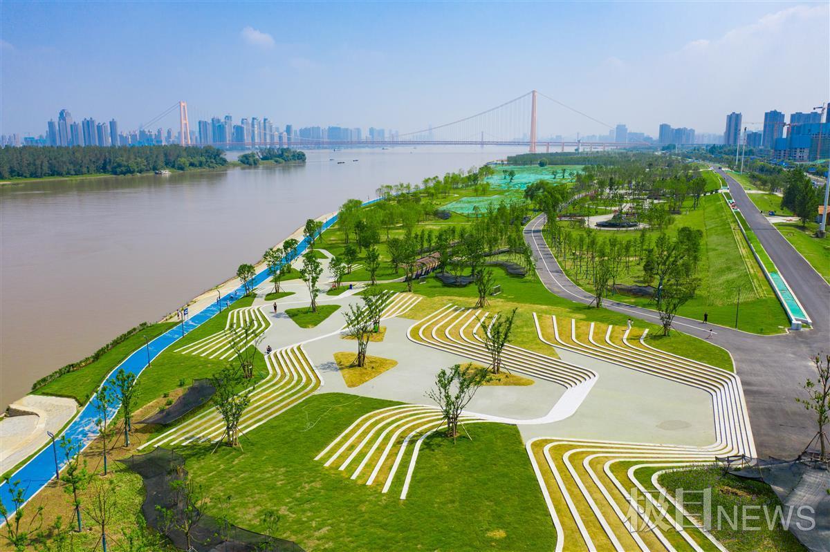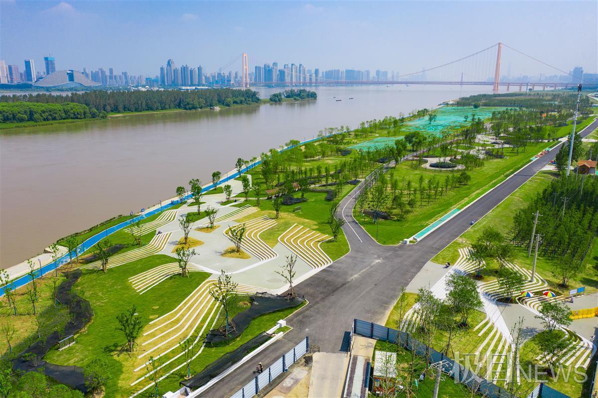 7月31日,在武汉市洪山区新武金堤路与滨河路交汇处的洪山江滩内,不少市民进入新落成的江滩示范段赏景休闲。