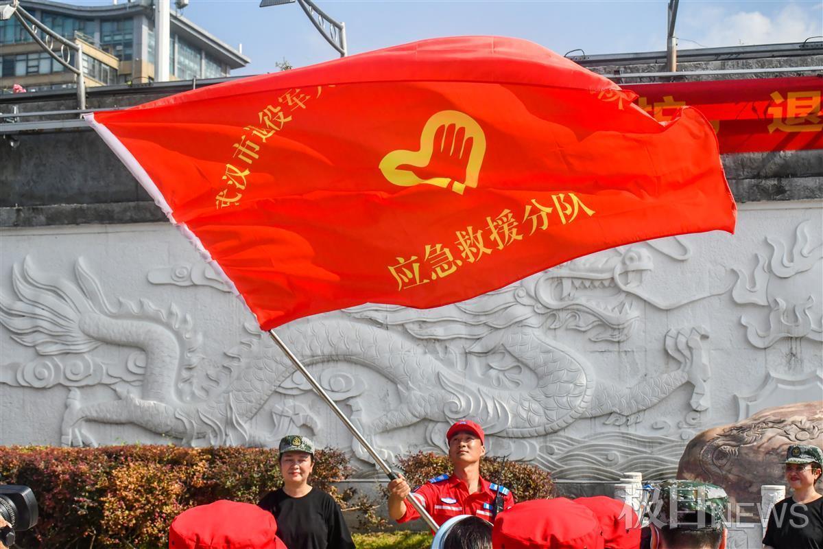 7月29日上午,庆祝“八一”建军节武汉市退役军人“长江卫士”主题志愿服务活动启动,武汉市退役军人“长江卫士”志愿服务队应急救援分队被授旗。这是应急救援分队16名队员第一次集体向公众亮相。