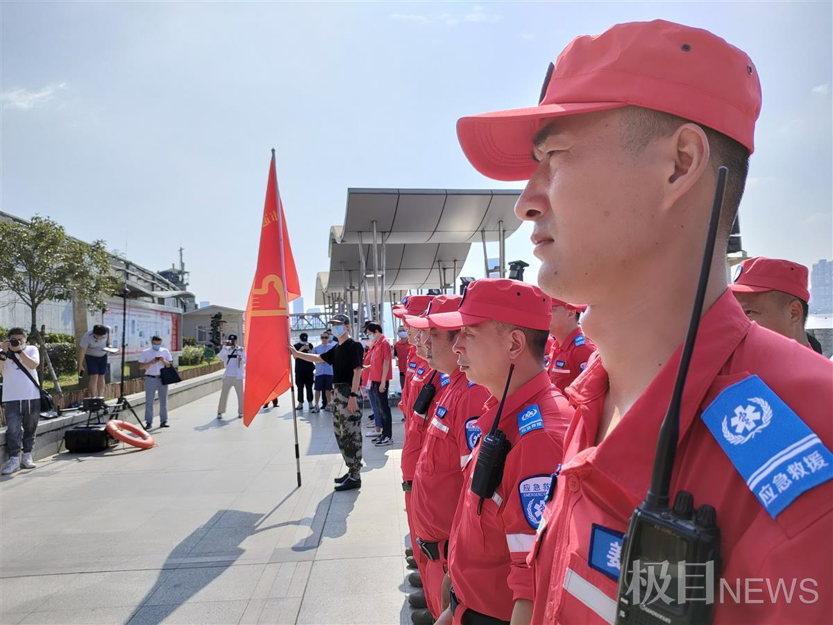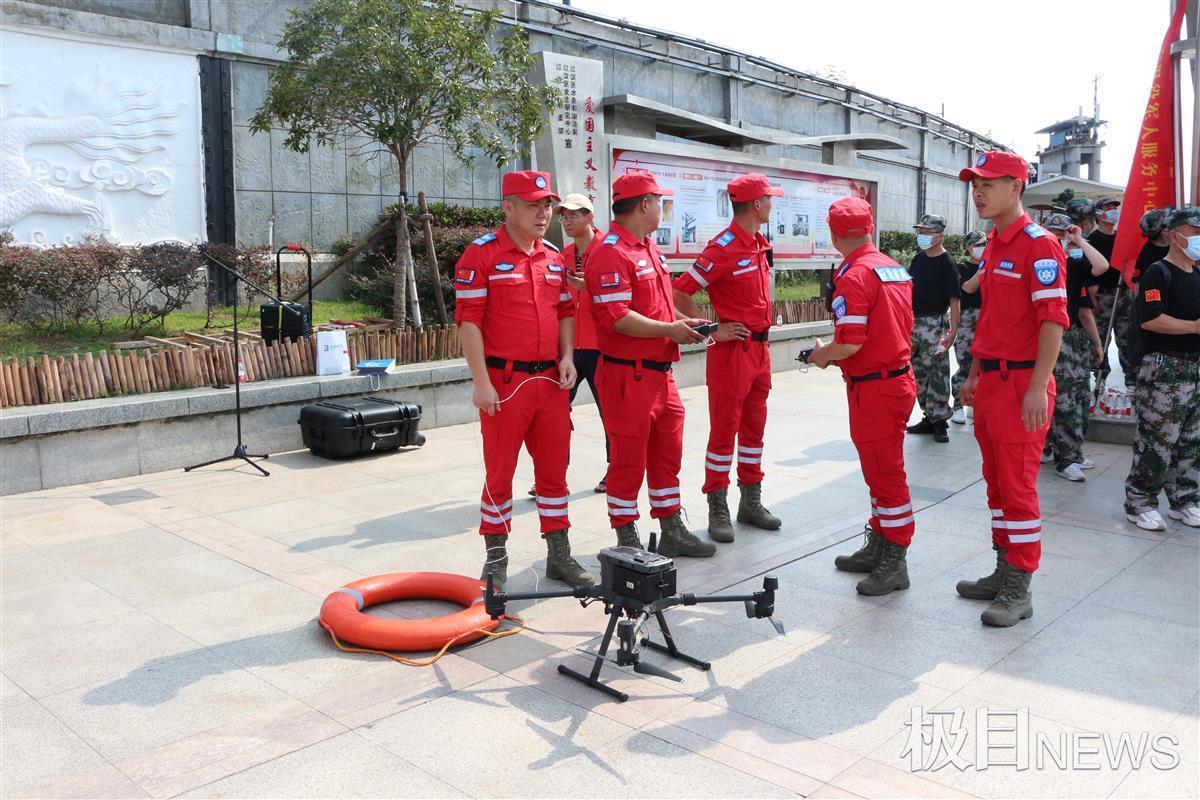 启动仪式现场,应急救援分队队员们进行了一场应急演练。一架无人机定点抛下救生圈,搜救犬迅速接近目标,展开救援。极目新闻记者注意到,应急救援分队配备有无人机投放救援、皮划艇、搜救犬、北斗无线电台等装备。“这些装备都是队员们自己的,哪里有应急救援随时可以派上用场。”张伟说。