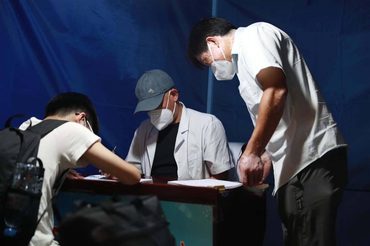 8月1日,从郑州返回武汉的旅客在武汉火车站接待服务点进行登记申报