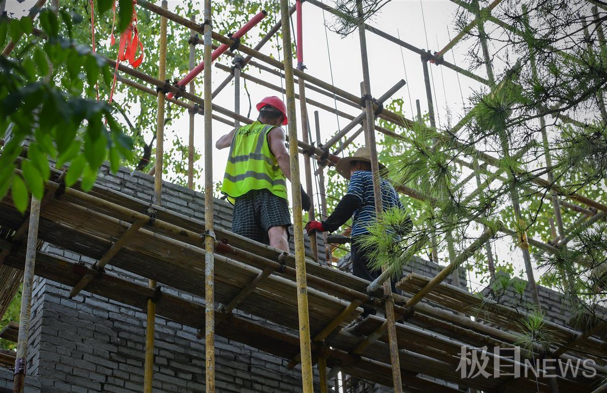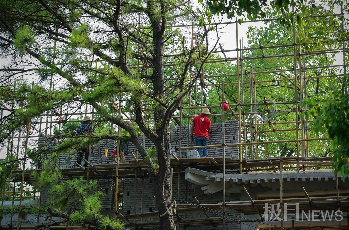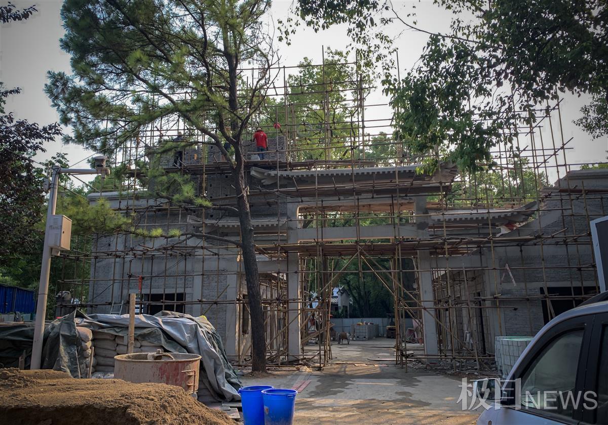 8月1日下午5时许,记者看到武汉市东湖落雁景区大门朝里约100米处,加起了围挡,工人们正在热火朝天的施工中,远看是好像是在修建“第二道门”,据工人师傅介绍,这修建的是砖混结构,有仿古风格,但并不是大门。