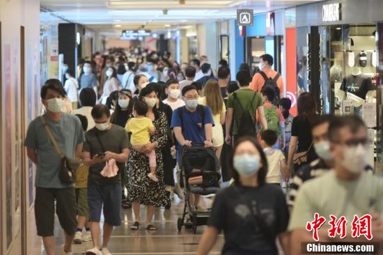 8月1日,香港特区政府向市民发放第一期2千港元电子消费券,位于尖沙咀一商场、零售商户推出不同的优惠,吸引大量市民入內消费。图为大批市民于尖沙咀一商场内购物。