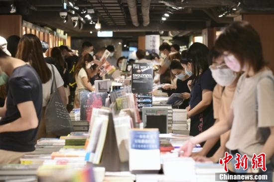 8月1日,香港特区政府向市民发放第一期2千港元电子消费券,位于尖沙咀一商场、零售商户推出不同的优惠,吸引大量市民入內消费。图为大批市民于尖沙咀一书店内选购书籍。