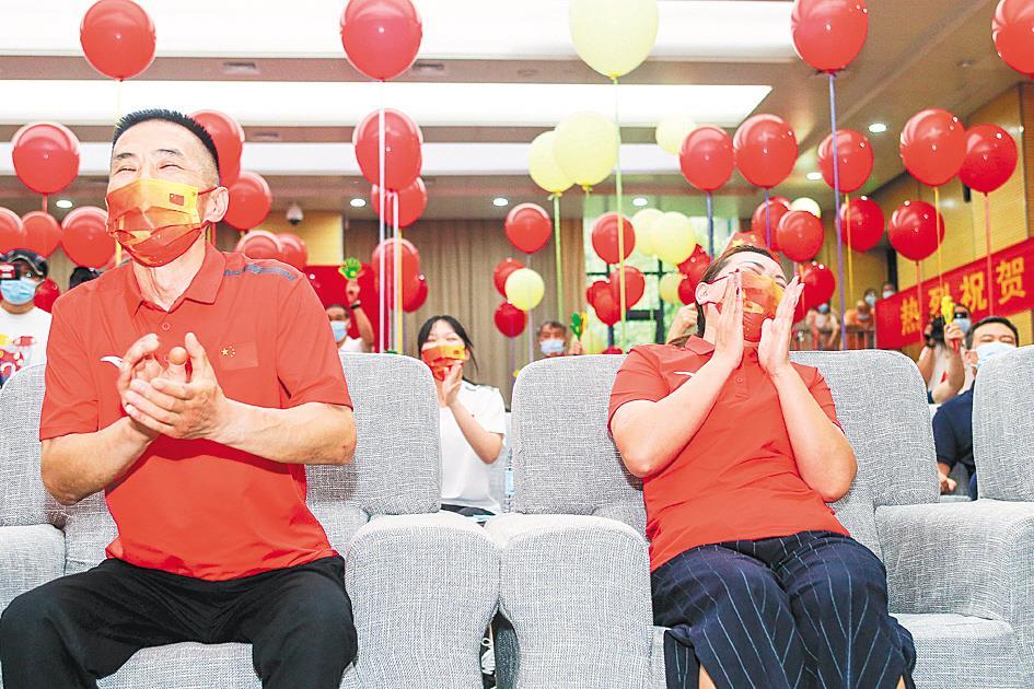女儿夺冠,汪周雨父母喜不自禁。 (湖北日报全媒记者 时龚 摄)