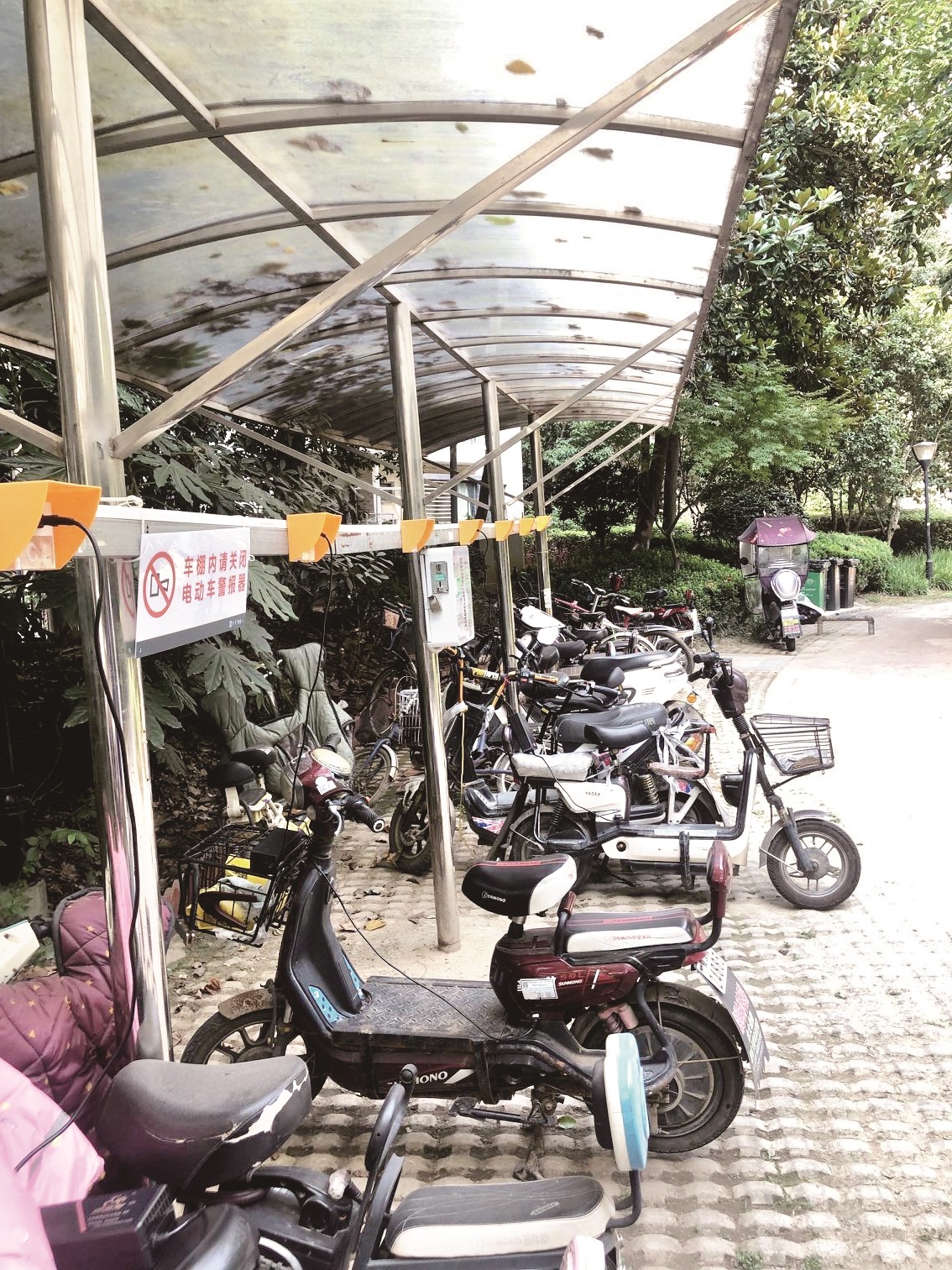 记者注意到,小区可供电动车停放的车位只有4个,没有可供集中充电的停车棚及充电桩。“电动车上楼问题想要得到解决,问题的关键还是政府及有关部门要落实修建电动车停车棚和充电桩的计划,加强小区治安管理等。”周女士对记者说。