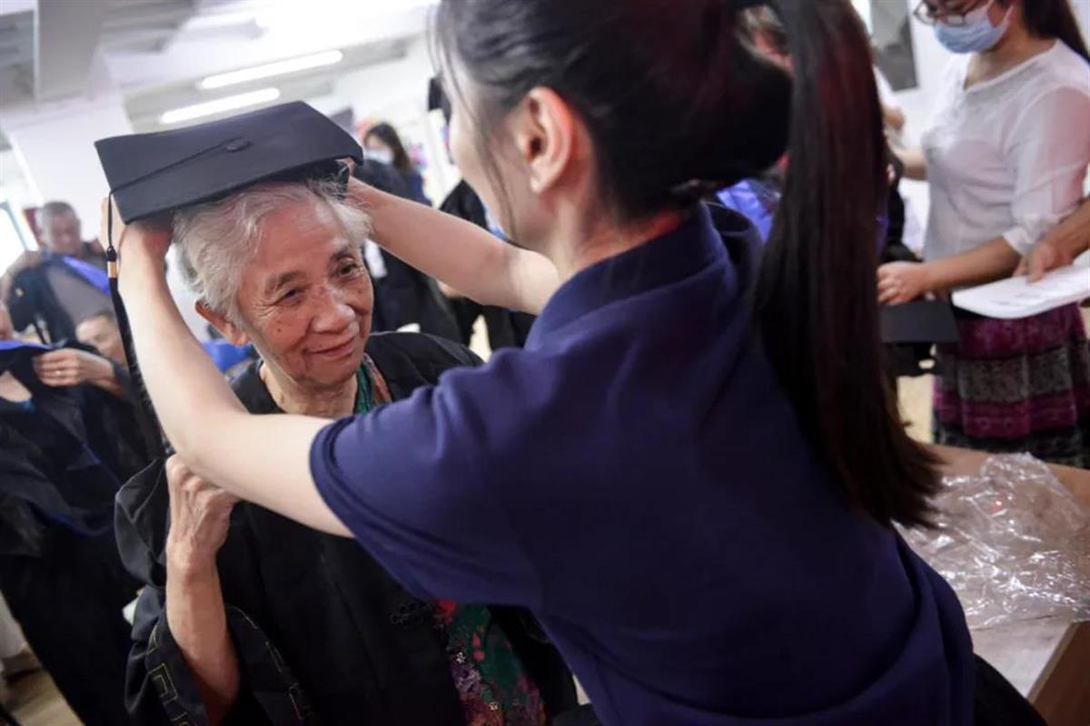 这场充满仪式感的毕业典礼,不是发生在高校,而是在武汉三镇一个又一个社区里。学生们也不再年轻,他们白发苍苍,腿脚也不利索,一上课就开始“玩手机”。