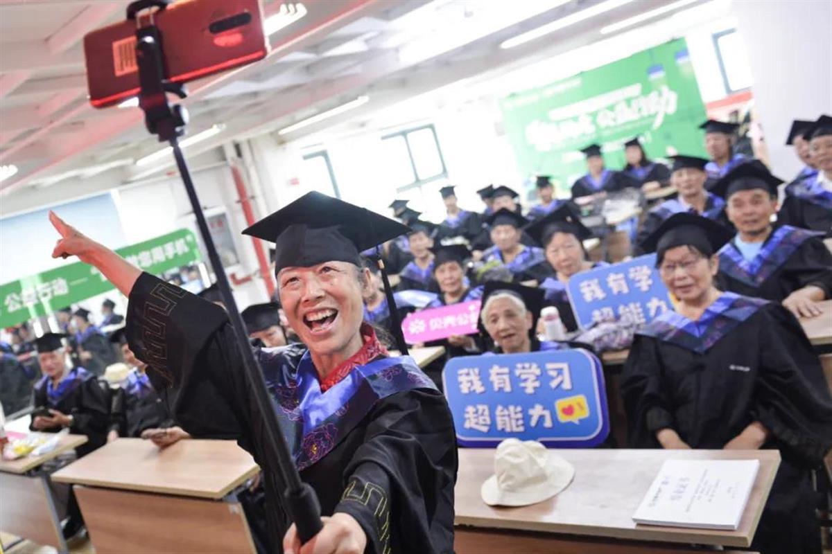 上台领取结业证书,拍照合影留念,对着手机镜头高喊“我们毕业啦”……笑容满面,精神矍铄,过去没有机会上大学的老人们,这一次好好地过了把瘾。不仅是这些老人,这个夏天,来自6个城市的200位老人,和他们一样,也迎来了自己的毕业典礼。