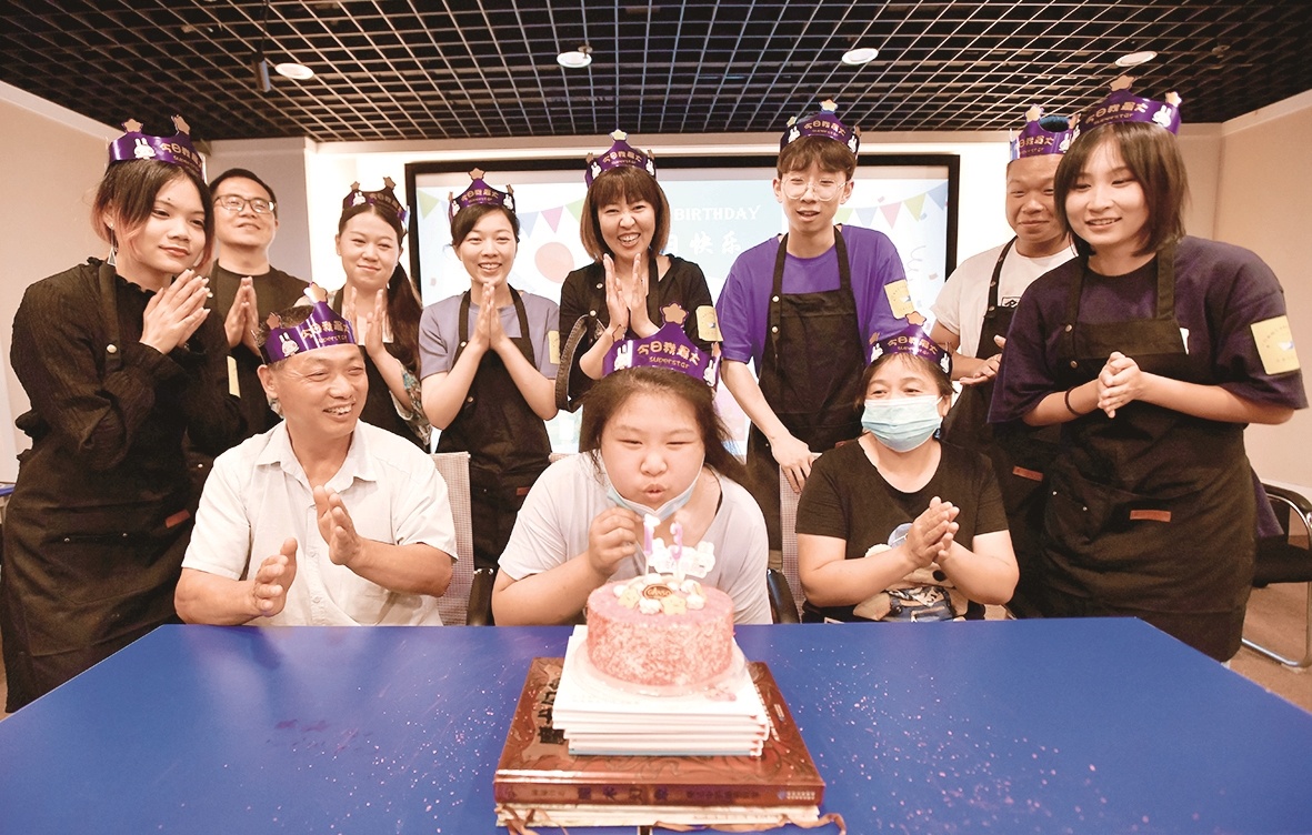 “生命方舟”志愿者为玫玫(前排中)庆祝生日
