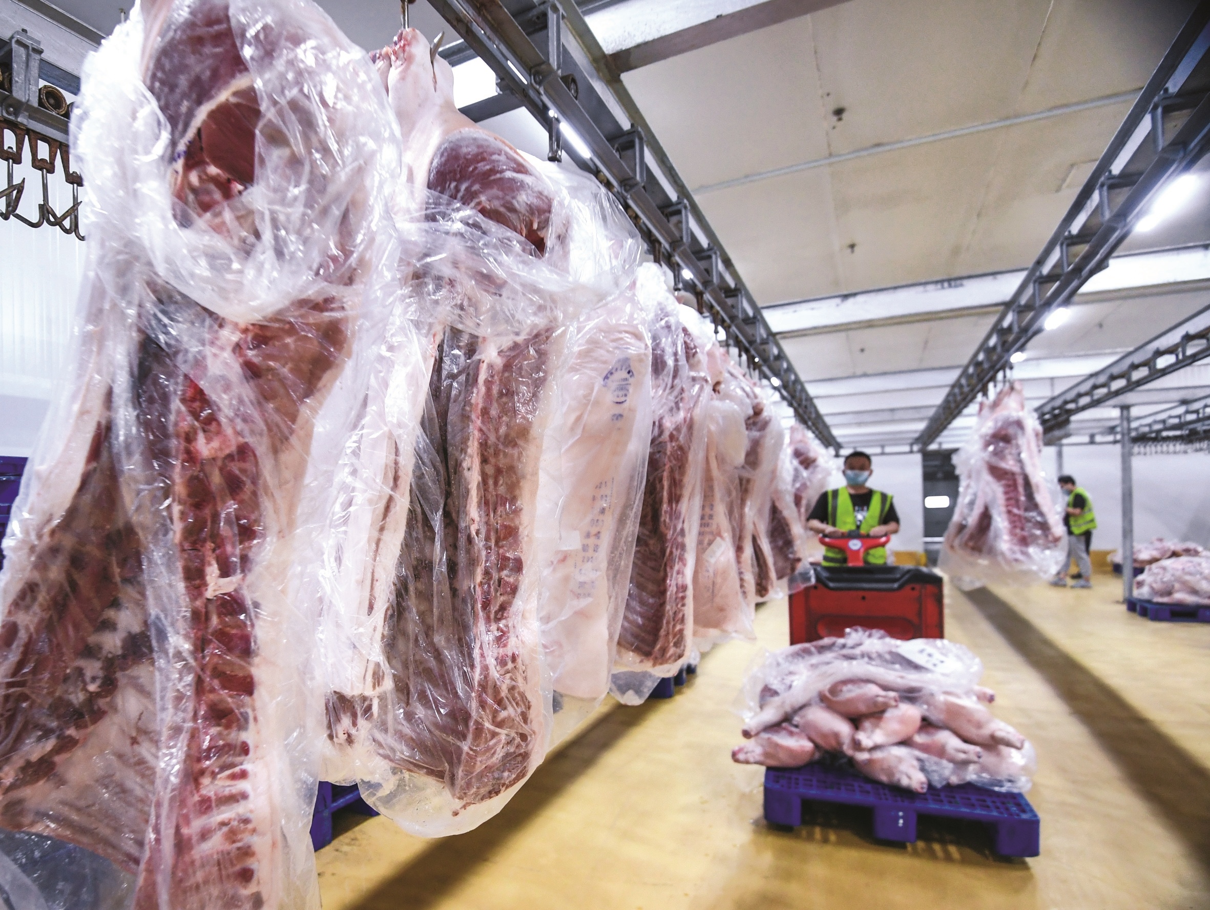肉,也是很多市民采购的重点。在中百集团江夏生鲜物流园,极目新闻记者看到,不断有冷链货车进出,在严格消杀后,将肉类产品运往武汉市内86家中百仓储门店。