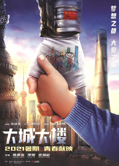他一直在仰望星空,可他也始终脚踩着坚实的大地。现实生活的偶发逼仄和困境更是激发了他的雄心壮志。刘石其实是一个幼儿园的老师。但引爆《大城大楼》全部青春故事的是这个幼儿园一个叫鹏鹏的孩子。就在上海之巅观光厅,鹏鹏无法和小朋友一起眺望远方:脑瘤压迫视神经。由此,一个充满了青春冒险的传奇和一个非常日常平凡的故事有了结合的叙事路径。刘石夸父逐日的疯狂和冒险并不是为了那颗遥远的太阳,而只是为了孩子眼前的那一线亮光。他要筹钱,他要轰动,他要不惜一切让鹏鹏再见光明。他怀着深沉的大爱。那是来自他和姐姐相依为命苦涩童年的人生底色。这就促成了他瞒着游戏公司合同,擅自闯楼,冒着生命危险登上632米塔冠,直播的那场几乎殒命的全甲殊死格斗。他的不屈不挠,最终赢得了认可和支持。为了鹏鹏的再见光明,即使失业了,他,还是不放弃,还是要再次登上上海中心,光明正大地和安德烈在俯视大地的最高塔冠演出一场轰轰烈烈的巅峰对决。而他高冷美艳的姐姐安安,如今的上海中心高管,有着开阔的国际视野,既有与国际大公司利益博弈的勇气和智慧,也有面对复杂局面管理的有条不紊和冷静,更有面对弟弟的莽撞的激烈言辞后内心深处埋着一份深深的爱。这不仅是对弟弟的疼爱,还有一份更大的爱来自心的深处,来自战火纷飞的维和前线。一个战乱中干渴孩子伸出的手,让她懂得世界上有无数伸出乞求着帮助的手。最终她辞去了高管,去做“自己想做的事……帮助孩子们实现他们的梦想。”还有为了帮助刘石丢了工作毫不埋怨的大华,商业上精明强干的游戏公司薛总。《大城大楼》为全新的在时代环境中成长起来的青年人雕塑了一座和上海中心比肩的群像。这座群像散发着和魔都一样欣欣向荣蒸蒸日上的青春气息。影片中,他们的青春绽放得热烈而不可阻挡,而且蕴含着对人、对生命内在的深沉的爱。