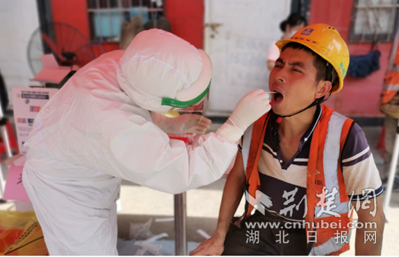 武汉市武昌医院为一位工人做核酸样本采集