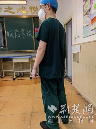 湖北省中医院一位医护人员工作间隙换下防护服后全身湿透