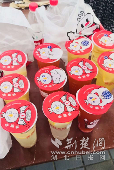 热心市民给武汉市中医医院医护送来了网红饮品降暑