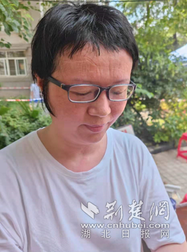 烈日下,湖北省妇幼保健院的一位女医护全身湿透