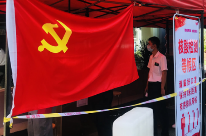 湖北省中西医结合医院的核酸检测点外,一面党旗格外醒目