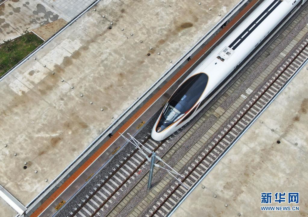 8月3日,在锦州北站,朝凌高铁正式开通运营。(无人机照片)新华社记者杨青 摄
