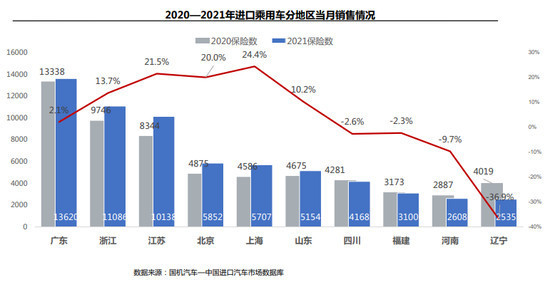区域方面,6月,广东、浙江、江苏的消费者最青睐购买进口车。销量前十省份中六成同比增长,其中上海增速最快,达24.4%;在同比下滑的四个省份中,辽宁受平行进口暂停影响最大,下滑幅度达36.9%。(中国经济网 记者郭涛 陈梦宇)