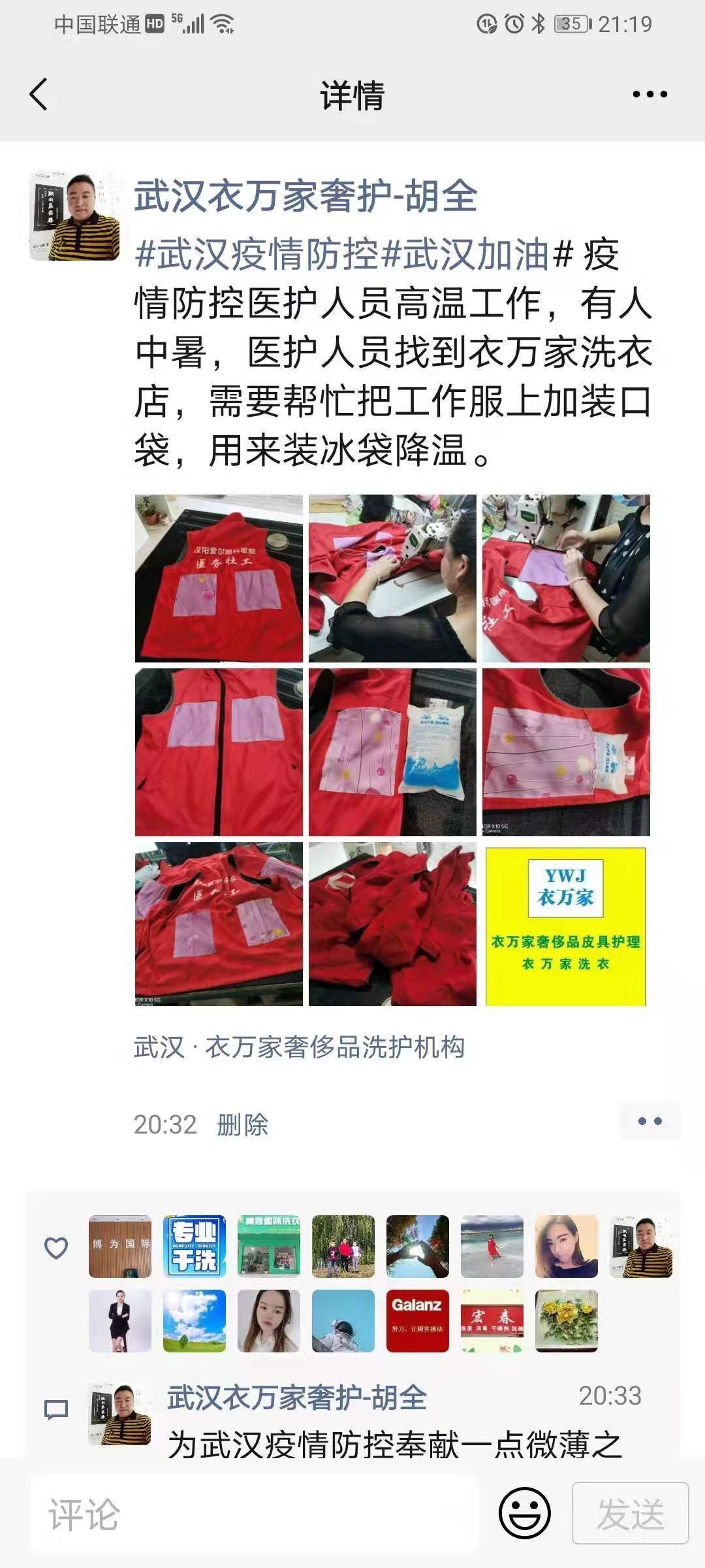 等这批工作服上的口袋全部加装完毕,赶来拿衣服的疫情防控人员要支付费用,被胡全婉言谢绝,“我们为武汉疫情防控做点小事,尽绵薄之力,应该的。”