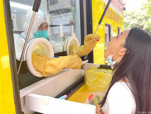 湖北日报讯(记者刘申、黄洁如、龙华)8月5日上午11点,一台核酸检测车开到武昌区水果湖街东湖路社区,为居民提供核酸检测服务。据悉,检测车配备全自动、便携式一体化新冠病毒核酸检测系统,通过机械臂和人工两种方式取样,最快可在45分钟内出核酸检测结果。