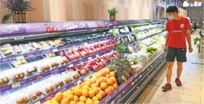 在东西湖万达的永辉超市,各种粮油食品、蔬菜瓜果等摆满货架。记者喻志勇 摄