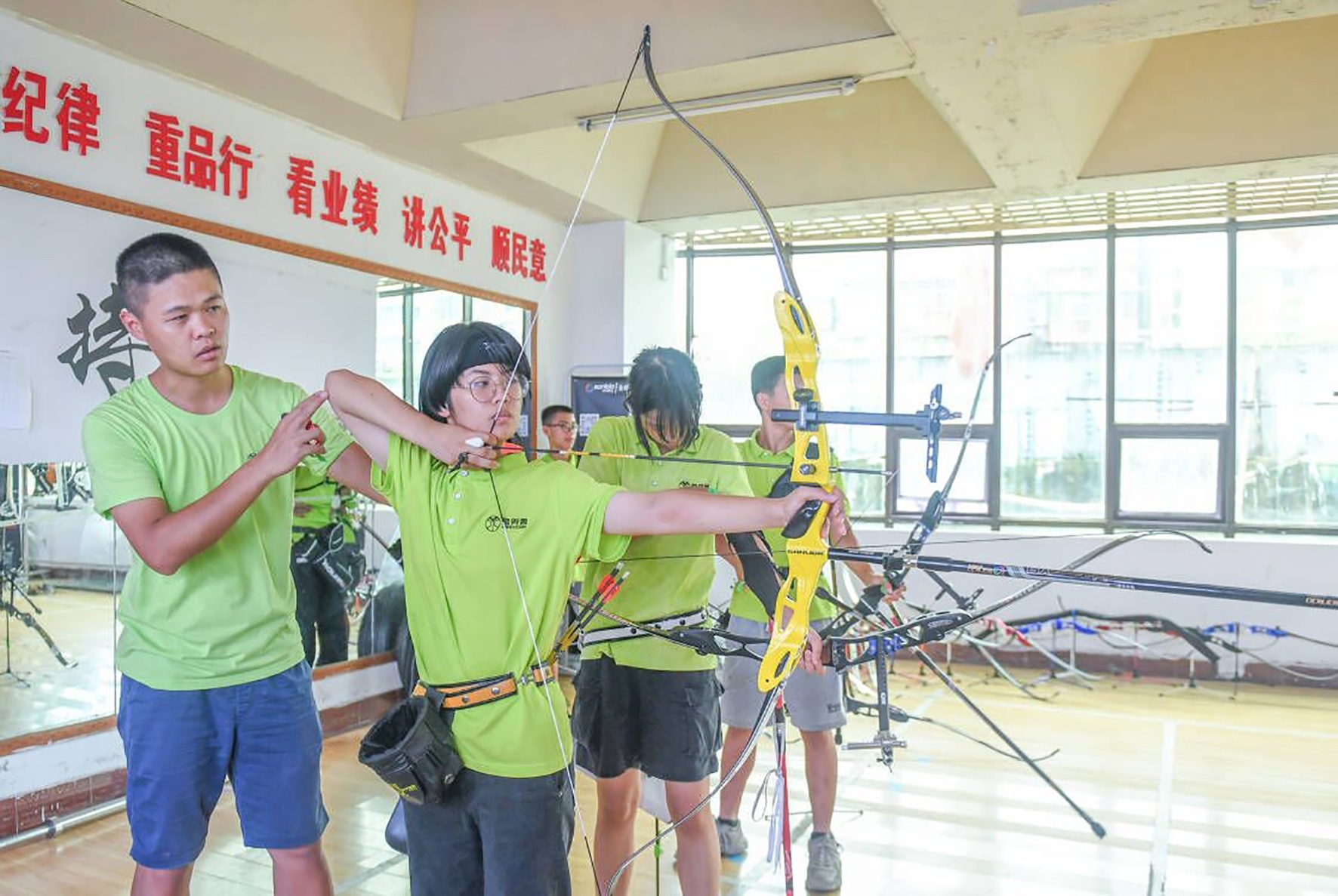 目前是武汉市射箭队一员的刘宣同学回忆,当时得知要开射箭班,同学们觉得新鲜极了。没想到陈老师又说,想学射箭没问题,先背《礼记·射义》,谁先背完谁先学。这篇不足百字的文言文难倒了不少人,为了进社团,从不背书的学生也开始“啃古文”,班级掀起一股学习热。