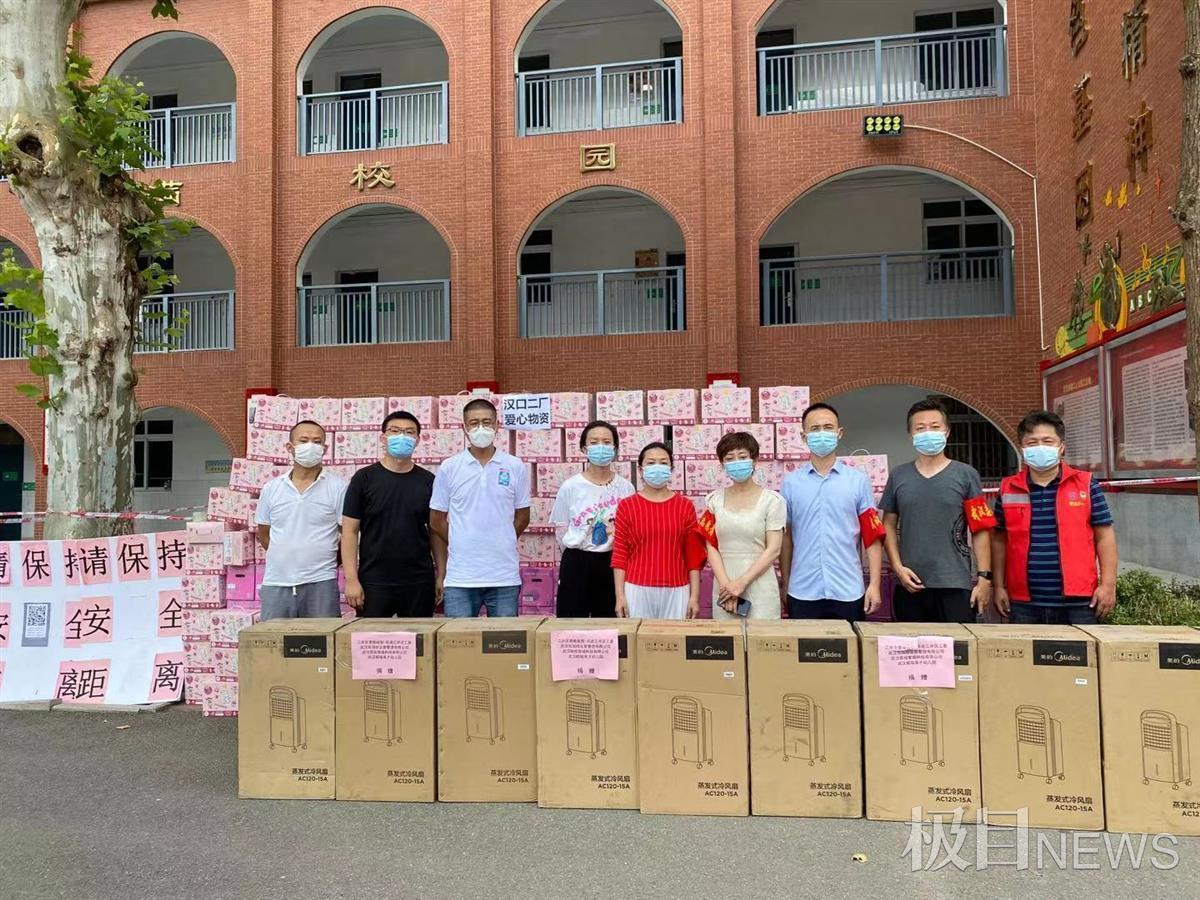 6日,爱心再次集结,武汉联投智城科技有限公司、恒润拾运营管理有限公司、武汉市昭瑞英才幼儿园等爱心民营企业筹集了总价值50余万元的汉口二厂降温饮料、空调扇等物资送往各检测点,帮助奋战在防疫一线的社区工作人员、医护人员、志愿者防暑降温。