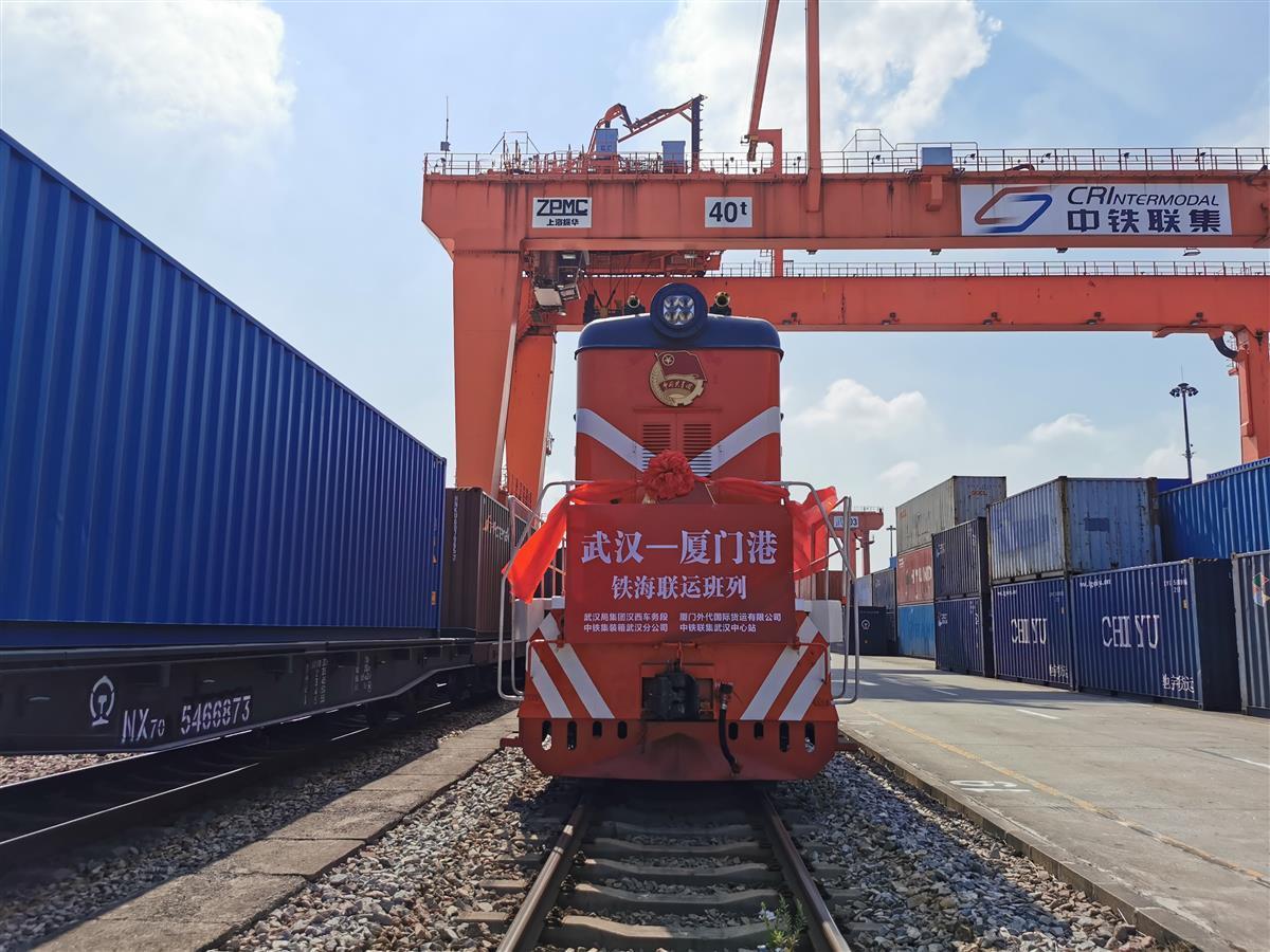 吴家山站货运负责人郭佩介绍,这是该站首开至厦门铁海联运班列,该趟统一采用集装箱运输,共装载6万余件武汉产休闲食品,班列抵达厦门后,将在厦门港转乘货轮,经海上丝绸之路前往泰国,整个运输行程在13天左右。该趟班列的顺利开行,标志着武汉-厦门-泰国国际联运新通道正式开通运营。