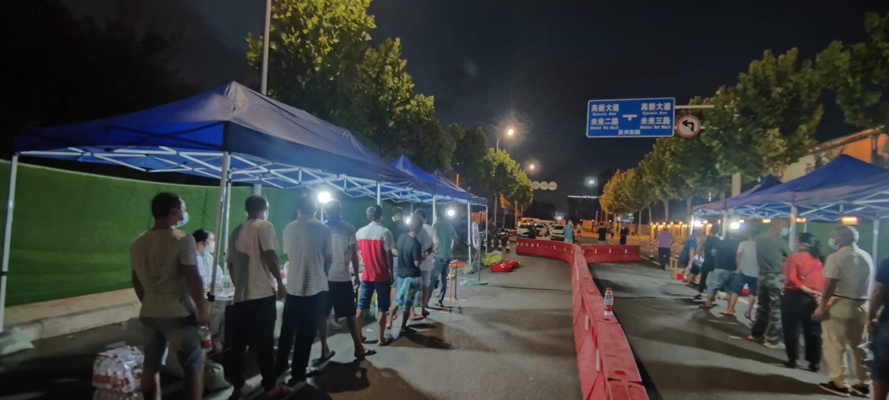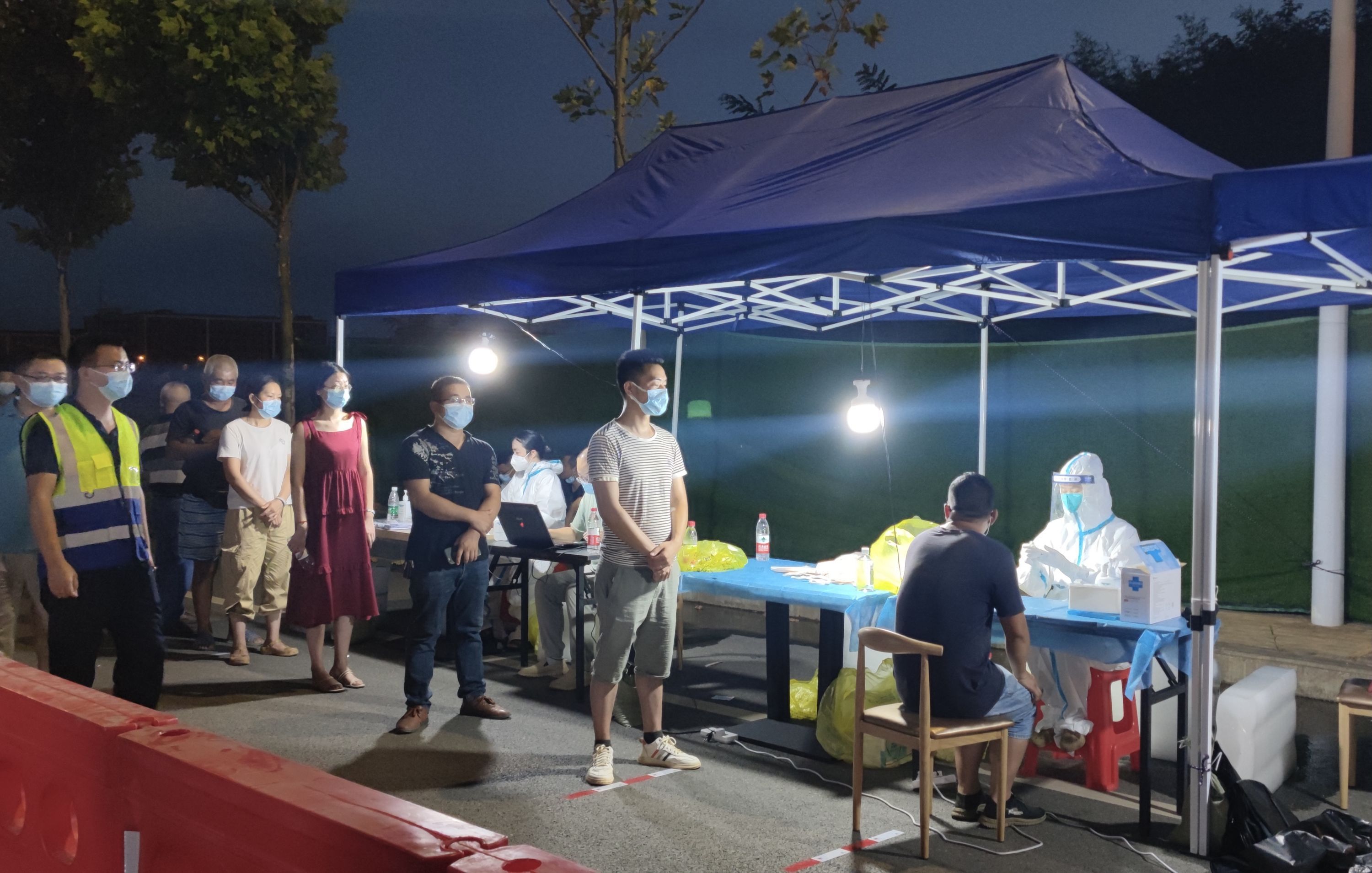 这个临时核酸检测点由高新大道项目部主动联系社区,出动所有管理人员及物业人员搭建而成。自8月3日开始着手准备,4日晚上6点搭建完成后立即启动检测工作,一直到5日凌晨1点,共完成了965名人员的核酸检测工作,其中包括300余名高新大道项目管理人员及作业人员。