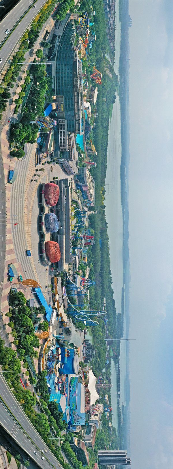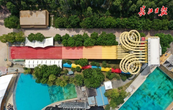 欢乐谷、玛雅海滩水公园等游乐园也配合疫情防控开始闭园,从天空中鸟瞰这几处,绿林中的各种游乐场所变得格外安静。
