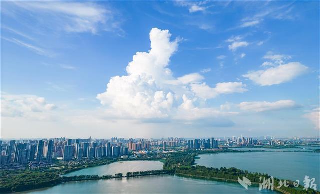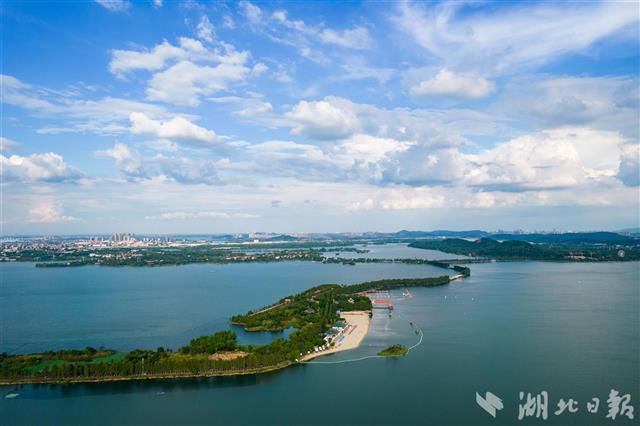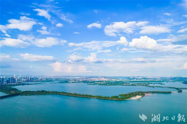 8月5日,蓝天白云之下的武汉东湖风光旖旎。据武汉市生态环境局近期发布的资料显示,2021年1-6月,武汉全市优良天数为148天,比2018-2020年3年同期均值多8天;优良率为81.8%,较2018-2020年3年同期均值增加4.8个百分点。(湖北日报全媒记者 薛婷 摄)