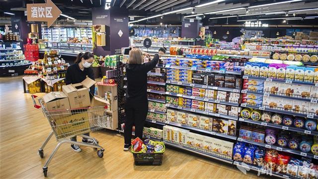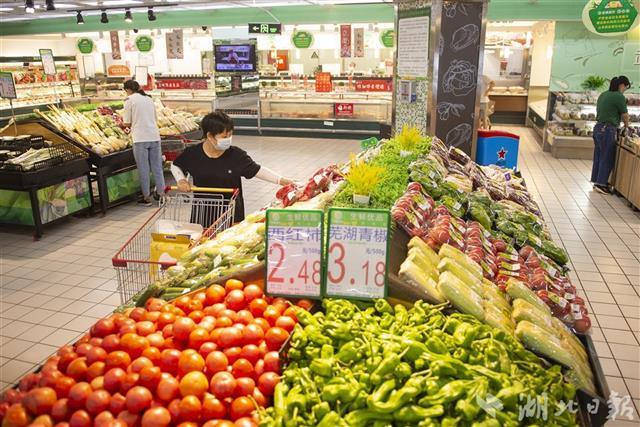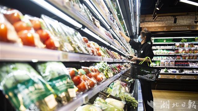 8月8日,市民在武商超市岳家嘴店、G-Super绿地优选超市、武汉K11购物艺术中心店内挑选生鲜食品。当日,湖北日报全媒记者探访武汉多家大型超市看到,超市生鲜区产品种类丰富、供应充足,各超市均按照要求严格落实防疫措施,坚持保供应、稳物价、惠民生,市民可放心前往选购。(湖北日报全媒记者 何宇欣 通讯员 甘亦丹 张天奇 摄)
