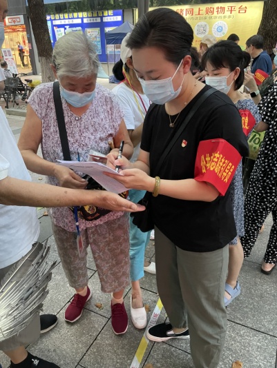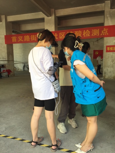 在武汉市武昌区放鹰台社区核酸检测点,一条核酸检测的队伍秩序井然地前行。“居民朋友们,天气炎热请大家耐心排队,请大家先扫码登记”省慈善总会下沉党员席丛苗在现场维持秩序并指导居民扫码通行。党员郑莉爽在省民政厅下沉社区首义街江零社区“绿色服务区”前,引导80岁高龄老人、残疾人、孕妇、未成年儿童走专用通道有序进入检测区。