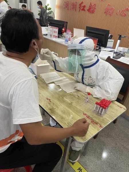朱剑锋驰援鄂州参加核酸采样工作。医院供图