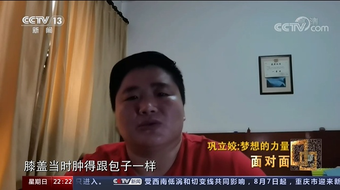 巩立姣:我是一名30岁以上的运动员,奥运延期对我来说是更大的挑战。所以刚知道奥运会延期的时候,我整个人神经就松了,伤病接着就找我来了,膝盖当时肿得跟包子一样,全是积液。幸运的是,我最后调整过来了。因为我觉得不管做什么事,都得坚持到最后。