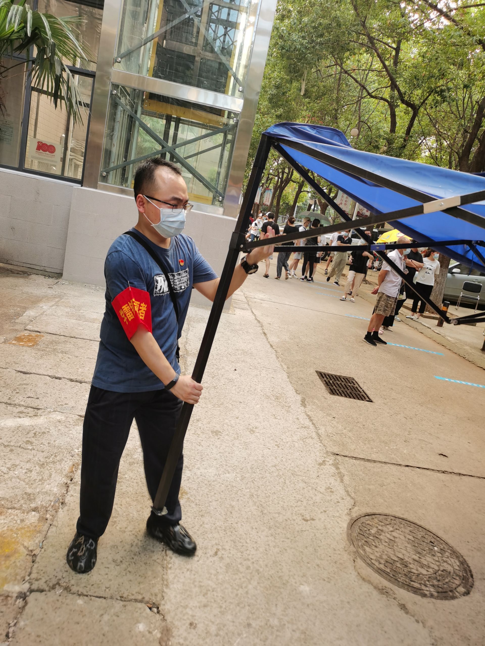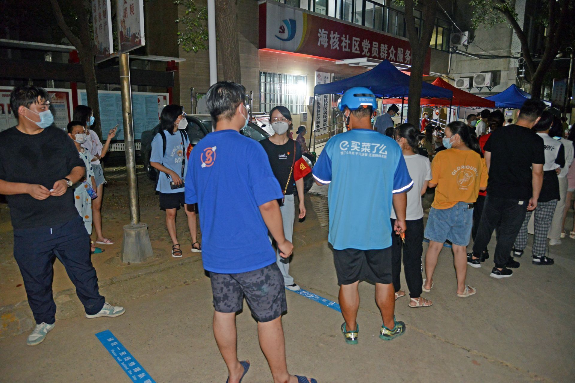 8月6日,根据社区需求,综合参检人员规模,市局稽局实时调整增派下沉党员力,第三小组17名下沉党员张莺、谢怒涛、张晟、陈治明、王文军、常广璐、骆映、蒋林、周一婷、周琪、韩沁男、於亮、李磊、孙浩、陈辉、武沈平由社区党组织分工调派,分布于生鲜市场核酸检测点,佩戴党员徽章,参与核酸检测分时分批计划安排、居民引导、秩序维护、突发事件处理等工作。